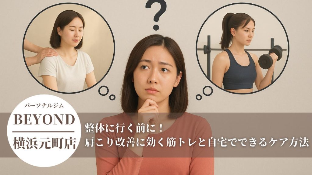 横浜元町エリアには、当店以外にも肩こり改善ができるパーソナルトレーニングもあるはずなので、「整体に行ってもまたつらくなる…」と感じている方は、ぜひ新しいアプローチとして筋トレを取り入れてみてください。